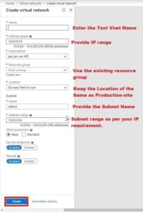 Create a different VNET under the Azure environment for performing the Failover Test.