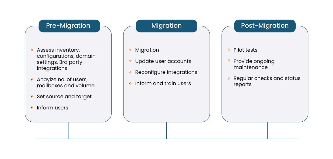 Evaluate the criticality of the data and plan for clean-up or archiving if needed to streamline the transition. Analyze the number of users, mailboxes, and data volume to select the most suitable migration approach.