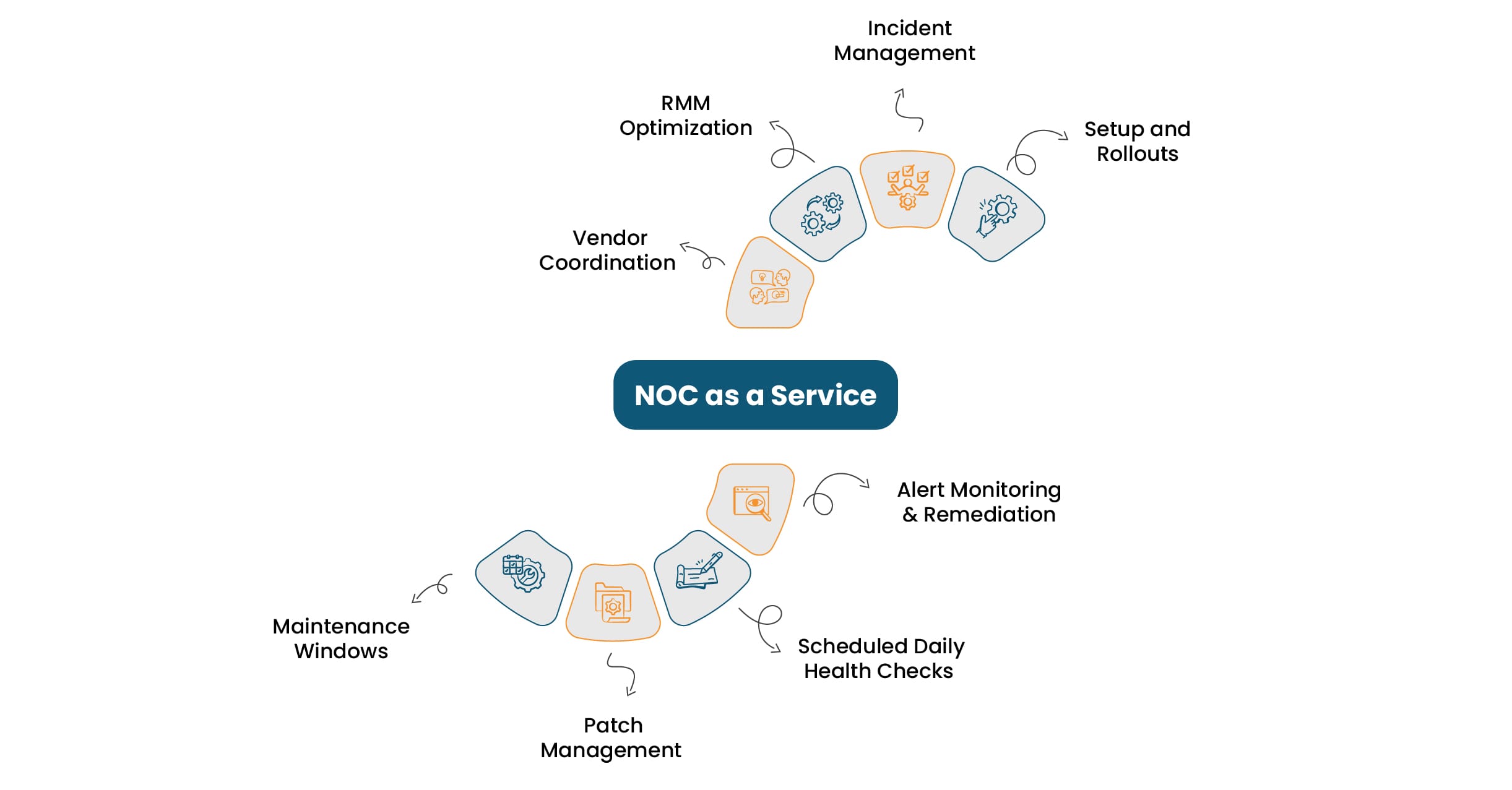 What sets it apart is not just the coverage window, but the depth. It’s not someone reading alerts off a screen and escalating tickets back to you. Done right, a NOCaaS partner functions like an extension for your team. They dive into logs, apply scripts, carry out root cause analysis, and resolve incidents based on pre-agreed SOPs. Your client never knows it wasn’t you, because the ticket’s closed before they even noticed something was off.